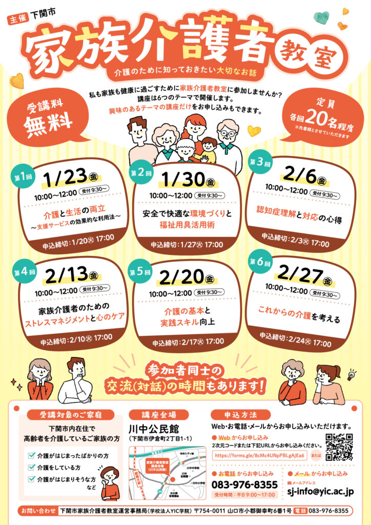 令和7年度 下関市 家族介護者教室のサイトがオープンいたしました。